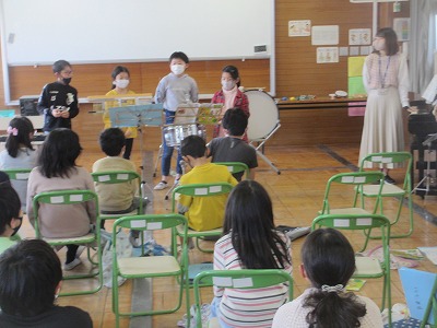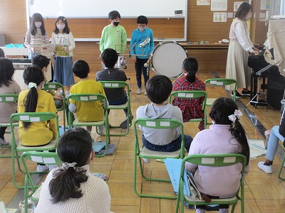 前に出ている子たちが「まほうの音楽」を担当しました。まほうの音楽は、みんなが順番に担当していきました。とても楽しく歌えました。