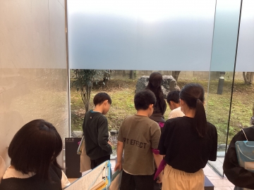 立命館大学国際平和ミュージアムの見学です。興味のあるブースの前で立ち止まり、解説を読んだり映像を見たりとしっかりと学んでいます。
