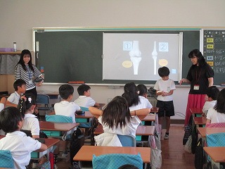 学習を進め、子どもたちは骨の模型や画像を見ながら、骨の成長の仕方について学んでいました。