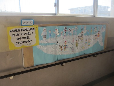 古市朋美先生が来られた時に、6年生が1年生の時に学習した「くじらぐも」の絵を持ってきてくださいました。