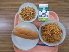 小型玄米パン 牛乳 きのこ入りイタリアンスパゲッティ フライビーンズ