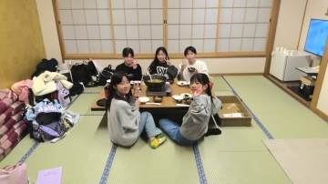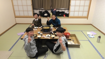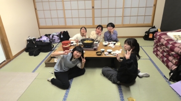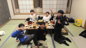 予定よりも少し早く旅館に到着しました。各部屋ごとに食事をし、ゆっくりと部屋で過ごしています。見学地ではみんな元気でしたが、朝早かったことや人ごみに疲れたのか、