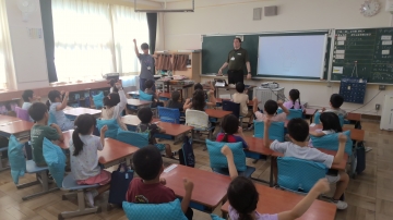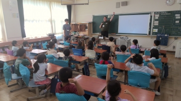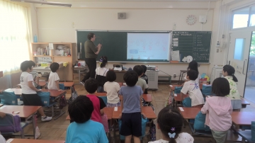1年生がニール先生と一緒に外国語の活動を楽しんでいました。今日は気持ちを表す言葉をたくさん話す場面でした。ゲーム的な要素も取り入れられ、子どもたちは楽しく英語を学んでいました。