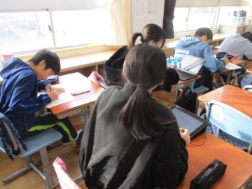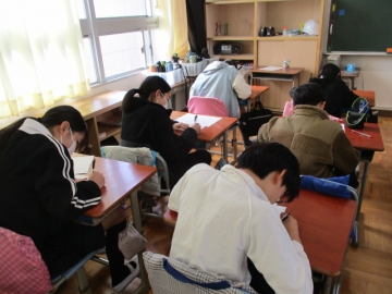 12月に書き始めた卒業文集ですが、1月になり卒業アルバムに載せるための清書に取りかかりました。書いた文を何度も読み直し、丁寧に文字を書いていました。