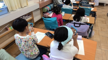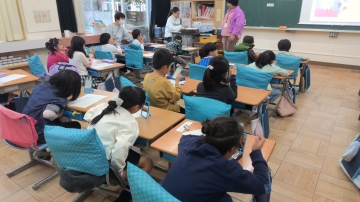 授業では先生の説明を聞いたり自分の口の中を鏡で見たりしていました。「新しく生えてきた歯、大事にしないとなあかんな。」そんな声も聞かれました。