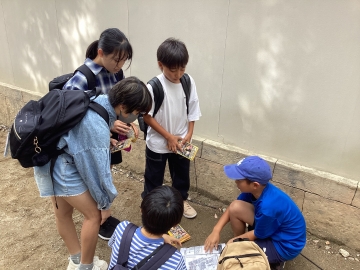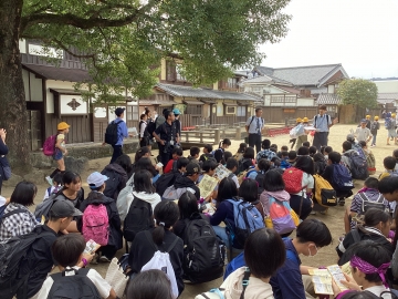 映画村に到着しました。昼食までの時間、班別行動です。作戦を立てて行動開始です。