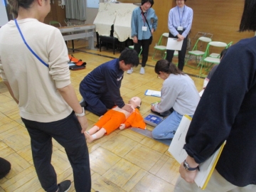 救急法の講習会を行いました。毎年行っていますがとても大切な活動ですので、みんなで確認しながら取り組みました。