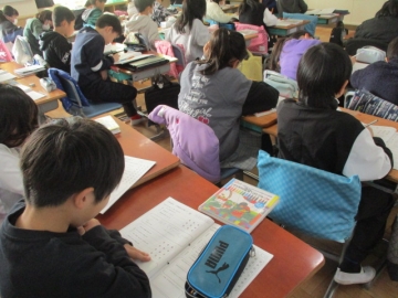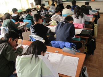 4年生はキャリアパスポートに2学期の振り返りを書いていました。頑張った教科、楽しかった教科等を振り返り、3学期以降の取り組みにつなげていってくれることでしょう。