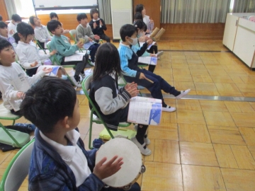 2年生は音楽で、2学期に学習した歌、鍵盤ハーモニカ、リズム遊び等を振り返りました。「この歌好き」「もっとふきたい」等、楽しそうに取り組んでいました。