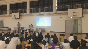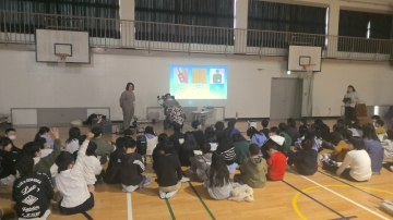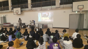 5年生が川島地区在住の青木さんを講師に迎え、自らの生い立ちから今感じていることを話していただきました。友だちや家族、ヘルパーさん等、たくさんの人に支えてもらって生きていること、そして、いつも感謝の気持ちを忘れず生きていること等、「友だちや家族をはじめ周りの人への感謝、大切さ」といったことを子どもたちに語っていただきました。最後には「周りの人を大切にすることは、巡り巡って自分を大切にすることにつながるよ」「いろんなことに挑戦することが成長につながるよ」等、素敵なメッセージをいただきました。真剣な表情で聞き入っていた子どもたち、しっかりと心に届いたことだと思います。