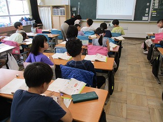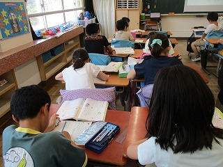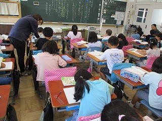 2年生が国語でメモを活用して作文を書いていました。その書いた作文をもとに話すことがねらいです。休み時間のドッジボールのこと、校区の探検に行ったこと等、自分が書きたい伝えたいことを作文にしていました。
