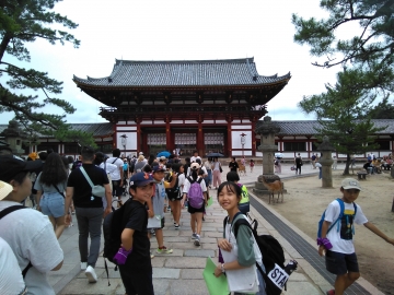 昼食を終え若草山から東大寺大仏殿まで班別行動です。二月堂、三月堂、大仏殿と見学です。