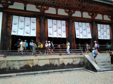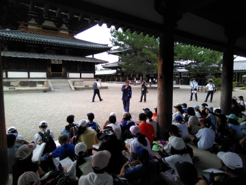 法隆寺の見学ではガイドさんの話をしっかりと聞き、気のついたことをメモにとっていました。