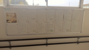 校舎内のあちこちに掲示板があります。各学年やクラブ・委員会等の成果物やお知らせ等が掲示してあるものを紹介します。