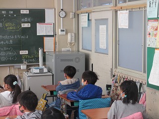 今年度中に、すべての子どもたちにタブレット型パソコンが整備されます。今朝、子どもたちは、教室前方の