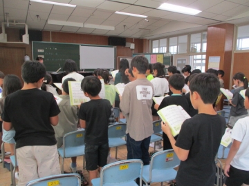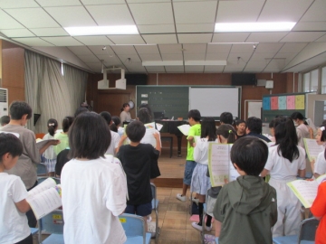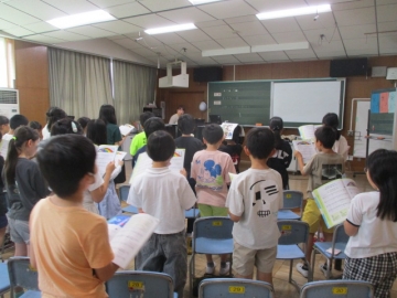 5年生の音楽で「すてきな一歩」という曲を歌っていました。楽譜に出てくるmp,mfを意識して、強弱をつけながら歌う練習をしていました。明るく楽しそうに歌う姿がたくさんありました。