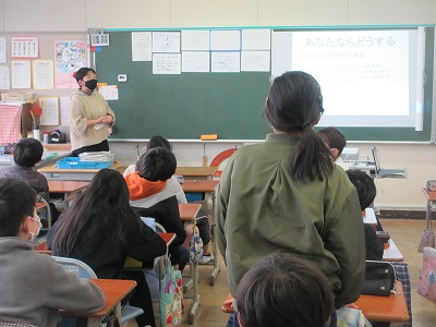 6年生は先週の木曜日(4日)、金曜日(5日)の総合的な学習の時間に「新しい一歩をふみだそう」という学習で差別やいじめについて考えました。
