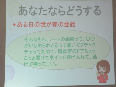 親友から「あの子、無視しよ」って言われたら何と返答するのか について考え、意見交換をしました。