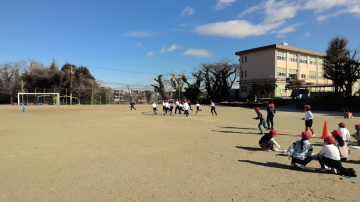 3学期に入り、どの学年も体育や25分休みにはなわとびに取り組んでいます。それと合わせて、体育の時間には持久走にも取り組んでいます。友だちとの比較ではなく、自分の記録を伸ばすことをねらっています。今日は3年生が頑張って走っていました。友だちを応援するためにコースの内側を一緒に走る子がいたり、周回を数えながら大きな声で応援したりと、走っている子をみんなで励ましていました。