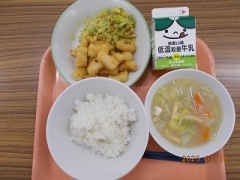 米飯 牛乳 いかのカレーあげ おかか炒め みそ汁