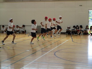 今日は6・2年生が20mシャトルラン、4年生が立ち幅跳び、5年生が反復横跳びを行っていました。「腰を低くすると回数が増えるよ」「腕を振ってジャンプするといいよ」等、先生から説明を聞くとそれぞれの種目で工夫をして取り組む姿が見られました。