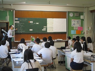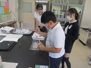 6年生が理科で「水よう液の正体」を探っていました。何種類もの水よう液の臭いをかいだりぶどうジュースを混ぜたりしながら、水よう液の正体(性質)を調べていました。最後は各班の実験結果をもとに、一つ一つの水よう液の正体を特定していました。