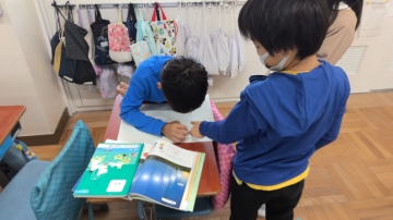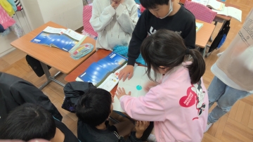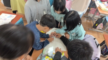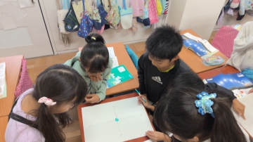 3年生は理科で「太陽とかげ」を学習しています。太陽とかげの実験をする前に、自分たちの作った実験道具を東西南北の方位がきっちりと合うように、方位磁針を使って置き方の練習をしていました。方位磁針のさす北の方角にむけて実験の台紙を上手に合わせていました。