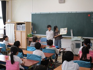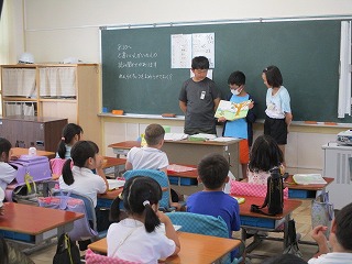 先週で読書週間は終わりましたが、図書委員による読み聞かせが今日と明日、1,2年生に向けて行われます。1,2年生の子どもたちは、図書委員の読み聞かせを楽しそうに聞いていました。「ありがとうございました」と読み聞かせが終わると、各教室から声が聞こえてきました。