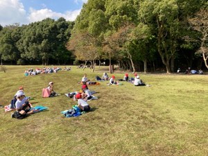 3.5年も無事に到着していました。今はお弁当の時間です。みんな美味しそうに食べています。