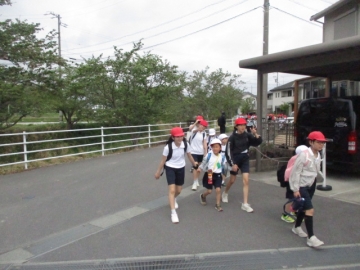 1・6年生は校区内の散策です。鹿化川沿いを歩いたり校区の公園で遊んだりしました。入学してまだ2週間の1年生にとってはいつもの通学の道のりよりも長い距離を歩きましたが、6年生のサポートもあり頑張って歩いていました。手をつないで歩く6年生、歩きながら校区のいろいろな場所を1年生に説明している6年生、とても素敵な姿でした。