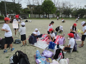 今日は遠足です。1・6年、2・4年、3・5年のきょうだい学年でそれぞれの目的地に出発しました。
