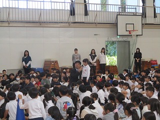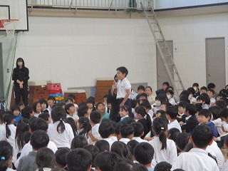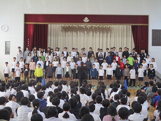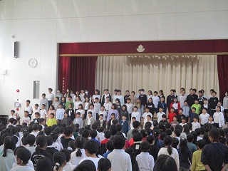6年生が「遠い日の歌」を合唱すると、素敵な歌声が体育館中に響き渡り、聞いていた1年生から5年生の児童も感動していました。「聞いていて嬉しくなってきた」「6年生になったら私たちも頑張って歌いたい」等、たくさんの感想が6年生に向けて伝えられました。