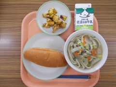 小型玄米パン 牛乳 けんちんうどん 大学いも