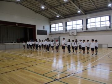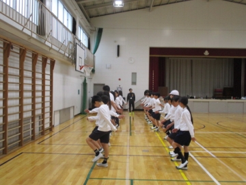 6年生が体育で集団行動(歩の運動、集合等)に取り組んでいました。集団で行動する際、集団を意識して能率的に活動を行うためには大切な要素になります。