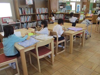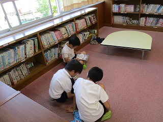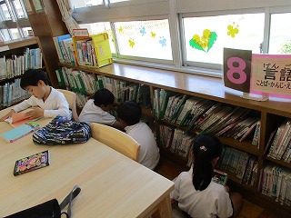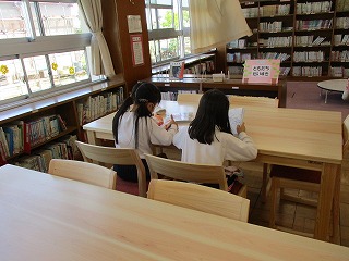 2年生が5限目に図書で読書をしていました。新しくなった机・椅子を見て「めっちゃきれいで気持ちいい」と、図書室での読書がより楽しくなったようです。お気に入りの本を探し黙々と読書をしていました。