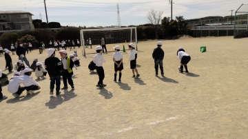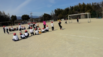 今どの学年でもボールを使った運動をしています。2年生もボールけりゲームとしてサッカーゴールにシュートする運動をしていました。自分でける位置を決めてけり入れたり、友達とパスしながらシュートしたり楽しんで運動していました。