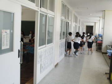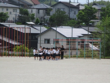 5限目、不審者対応訓練を行いました。教諭が不審者役となり、3年生の教室に侵入したとの想定で行いました。全校児童が教頭先生の放送の指示をよく聞き、素早く運動場に避難したり教室で待機したりと、それぞれの場所にあった行動ができました。