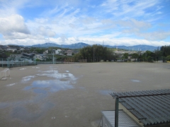今日は直前の雨のため、25分休みの運動場は使用中止でした。