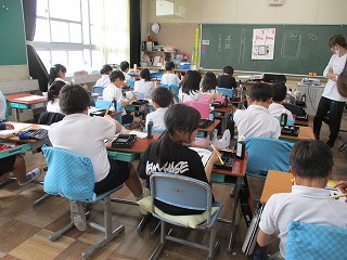 3年生の書写の時間です。3年生になり習字が始まりました。今日は字を書く前に丸を書いたり線を書いたりと、筆使いに慣れる活動でした。初めて筆を持つ子もたくさんいて意欲的に取り組んでいました。