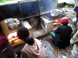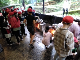 火起こし体験のあと、アルミ缶を使ったご飯作りに奮闘中です。火起こしは、成功した班もあったようです。