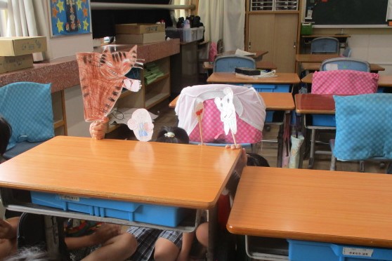 2年国語「ニャーゴ」ペープサート劇に向けて練習