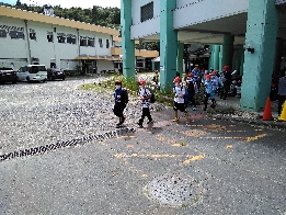 予定より少し早くウォークラリーに出発しました。地図と解答用紙を見ながら、班で協力して、得点を獲得してほしいと思います。
