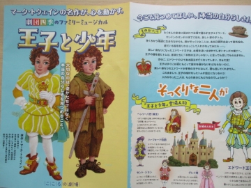 今日は6年生が「こころの劇場」の鑑賞で四日市文化会館へ行き、劇団四季による「王子と少年」という作品を見ました。子どもたちは目の前で演じられる