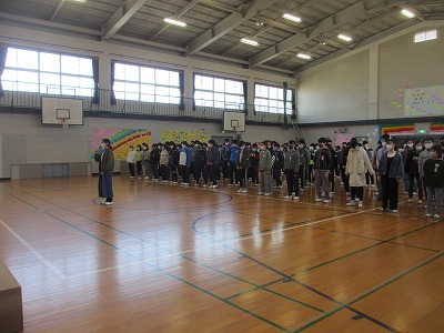 卒業生代表のあいさつの後、6年生から「旅立ちの日に」の歌のプレゼントがありました。その後すぐに「校長先生のお話です。」と紹介されました。