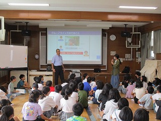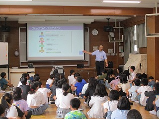 こども未来課青少年育成室より講師をお招きし、6年生を対象にeネット出前講座を行っていただきました。子どもたちが携帯電話やインターネット・SNSなどについて正しく理解し、安全で安心な利用の仕方等について考えることがねらいです。特に今日はLINEでのトラブルについて考え合う機会となりました。講師の方より「トラブルをなくすためにさけるためにできることを考え続けること。相手の気持ちを考え、想像力をもつことが大切。」だと子どもたちに伝えていただきました。最後に一人ひとりが振り返りを書いていました。「言葉一つひとつに気をつけながら友だちや家族と仲良く過ごしていきたい。」と感想がありました。