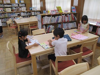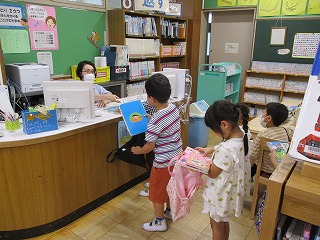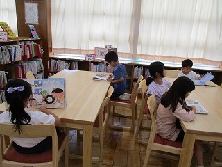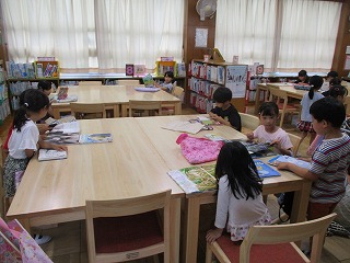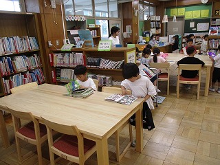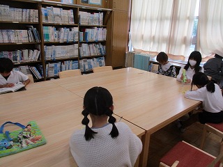 3時間目には1年生が図書室を訪れていました。図書室の利用に仕方にもすっかりと慣れ、自分のお気に入りの本を見つけては黙々と読書をしていました。