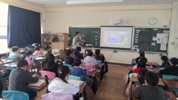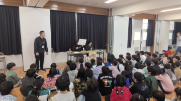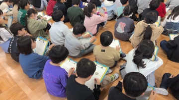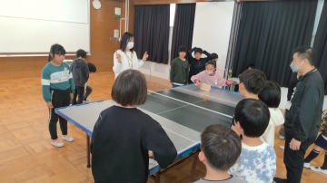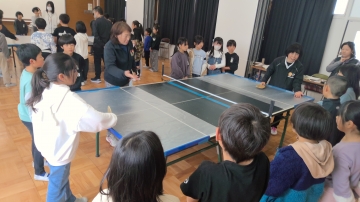 3年生が3・4限目にゲストティーチャーをお招きして、視覚に障がいがある方の生活からたくさんのことを学び、考える時間をもちました。 まず、各クラスごとにSSピンポンの体験から始まりました。SSピンポンもSSとは、生涯(syougai)、スポーツ(sports)の頭文字です。文字通り誰もが楽しめるユニバーサルスポーツです。子どもたちは音の出る球を楽しそうに打ち返していました。体験が終わると、学年全員が集まり講師の方の話を聞きました。さっきまで一緒にSSピンポンをやっていた方が全盲の方だとわかると、子どもたちからは驚きの声があがりました。生い立ちやSSピンポンとの出会い、コミュニケーションの取り方等について話していただきました。