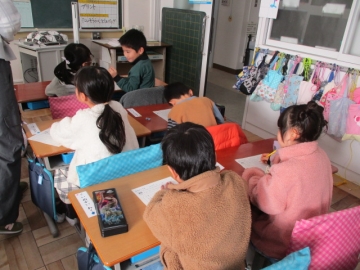 1年生が「かみひこうき」という教材を使って、自分のすきないろについて学習しました。いろいろな場面で自分の好みの色を自分で選び決定する、友だちの好みを尊重できることをねらっての学習でした。友だちと意見を交わしながら、自分たちの決めつけについて考え合っていました。