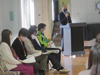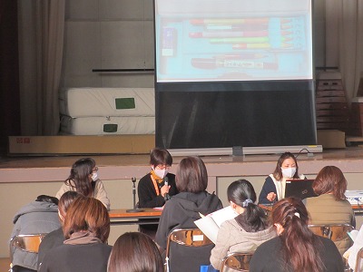 登下校の見守りについての説明がありました。その後、現1年生担任から「入学にそなえて」の話、養護教諭から「健康について」の話等が