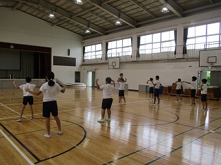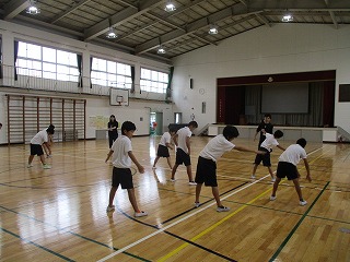 20分休みには体育委員会の子たちがラジオ体操の練習も行っていました。明日は全校児童の前に出て体操をします。一つ一つの動きを再度確認して、動きを高め合っていました。